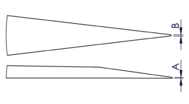 Pinsetin kärjen paksuus A= 0.10mm ja B= 0.15mm.