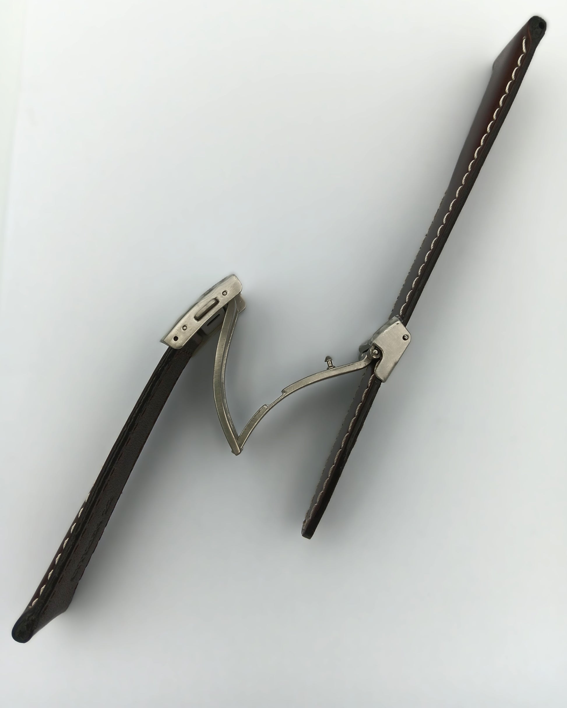 Nahkaosuuksien pituudet: 13 cm + 7.5 cm. Rannekkeen paksuus kapenee noin 5 mm:stä 2.5mm:iin.