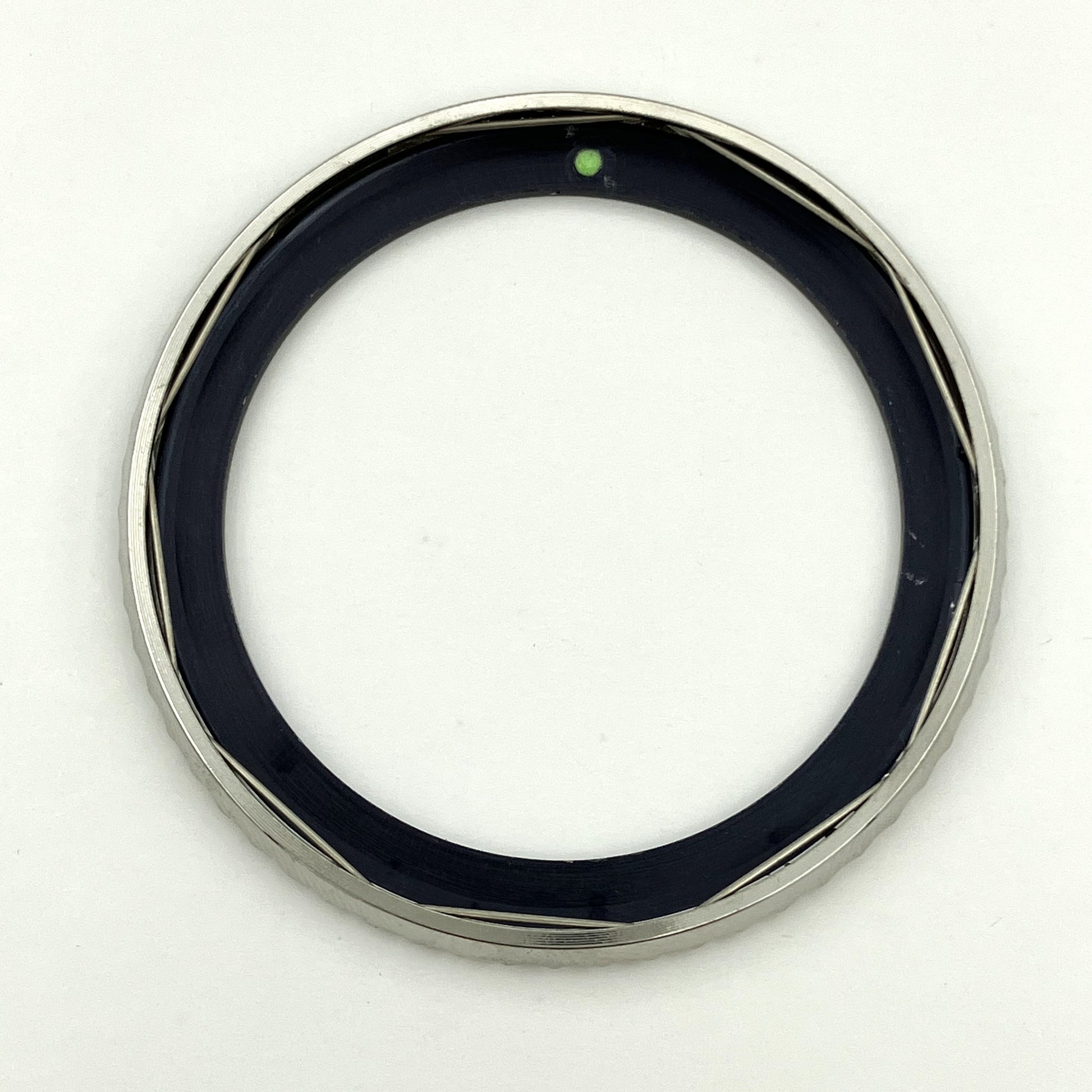 Alkuperäinen Citizen teräksinen bezel mustalla inserttirenkaalla ja valkoisilla numeroilla. Sisältää jousen upotettuna sisäpuolen uraan.