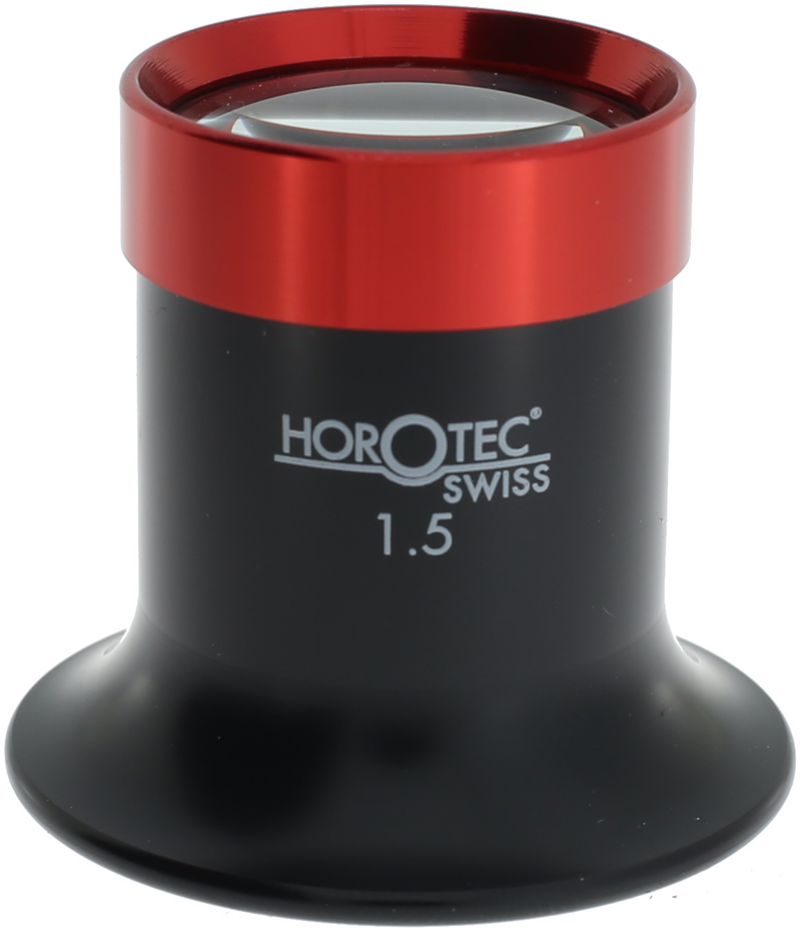 Horotec musta muoviluuppi 6.5x suurennuksella. Klassinen muoto punaisella ruuvatulla alumiinikehyksellä ja irrotettava linssi. Hieno viimeistely, kevyt ja tukeva. Linssin halkaisija 25 mm. Paino 20g.