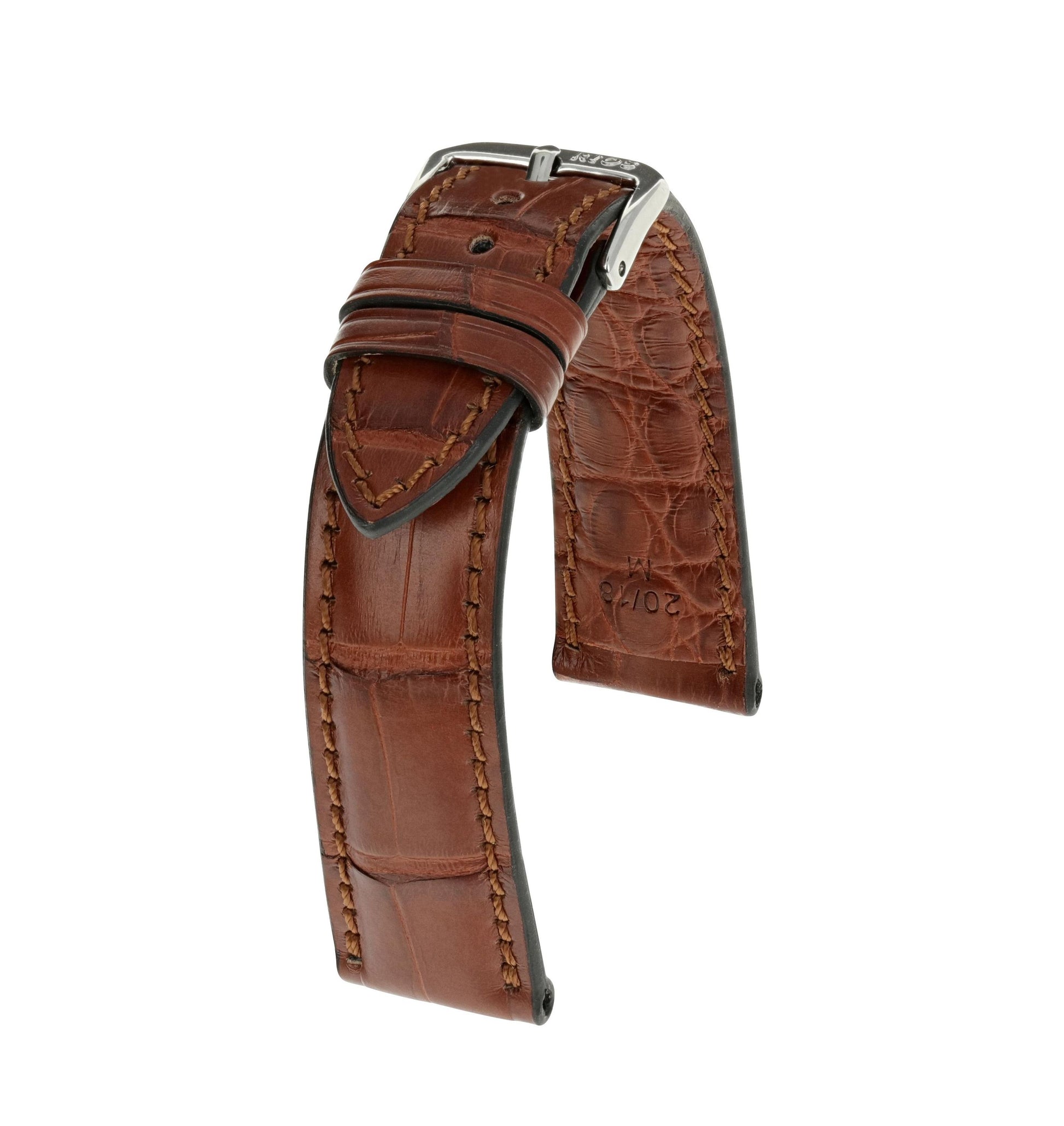 Ruhtinaallinen ja uniikki Monarch -alligaattorinahkaranneke on hienostuneen kiiltäväpintainen ja erinomainen vaihtoehto arvokellollesi.