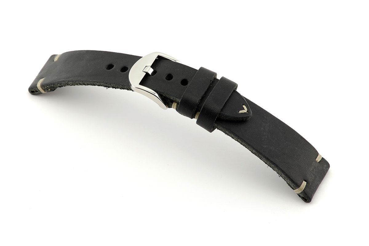 Jämäkkä Moore -rannekkeen upea vintage-ilme on erikoisöljyjen ja vahojen käytön ansiosta. Reunat on hiottu ja maalattu käsin. Rannekkeen päädyissä on kermanvalkoiset vahvat tikkaukset. Toiminnallinen sauma soljen päällä lisää turvallisuutta ja lenkki on ommeltu käsin X-ompeleella.