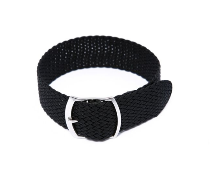 The Sailor -natostrap is water-resistant plaited perlon with stainless steel buckle.