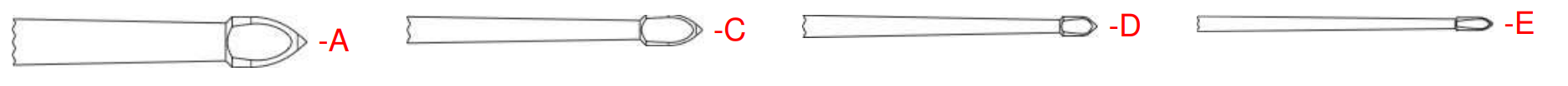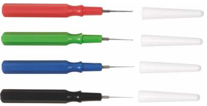 Muovinen varsi Ø 6 mm. Öljyneulojen varret on värikoodattu kärjen koon tunnistamisen helpottamiseksi.