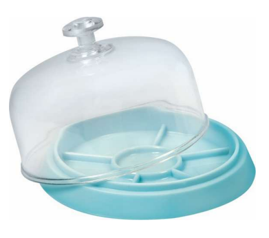 Muovinen pölysuoja kellon osien säilytykseen. Pohja jaettu kuuteen osaan.
