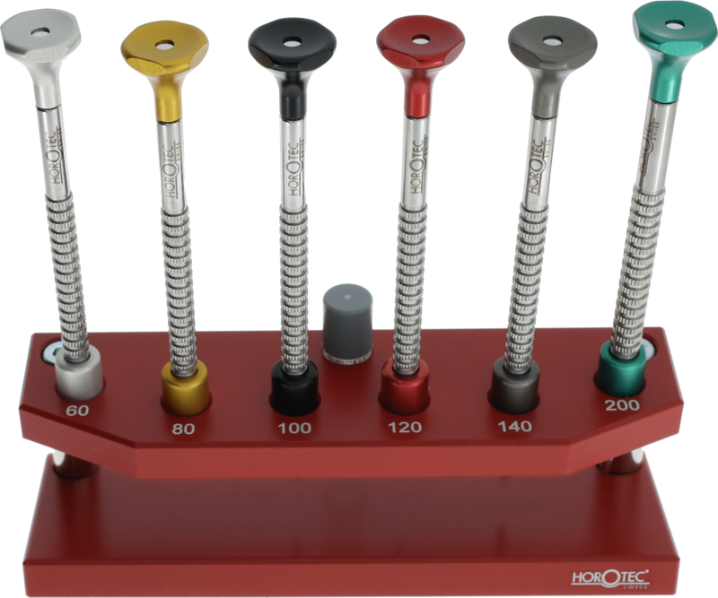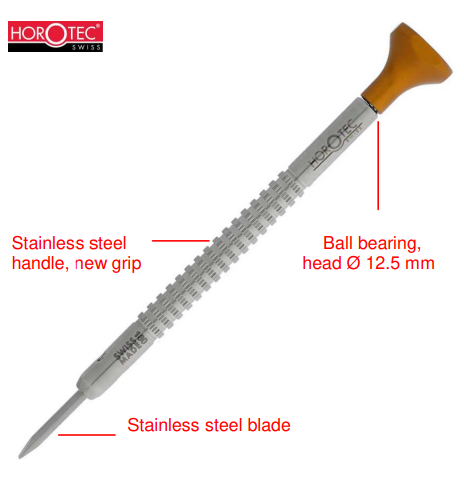 Ruostumattomasta teräksestä valmistetut talttaruuvimeisselit kuulalaakereilla. Horotecin uudistetussa ruuvimeisselissä pää on valmistettu anodisoidusta alumiinista ja värikoodattu koon mukaan. Toimitetaan punaisella vahvalla alumiinitelineellä, jossa on paikka mukana tuleville varakärjille.