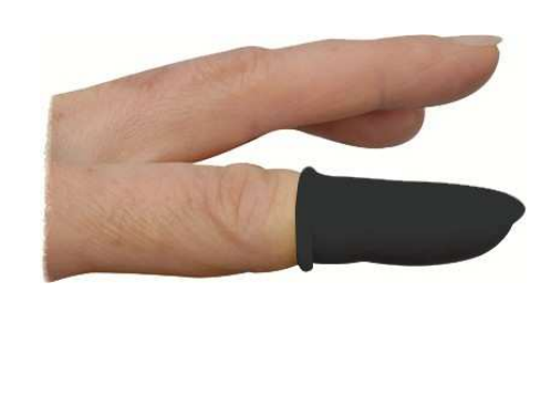 Antistaattiset (ESD) rullatut sormisuojat 100 % luonnollista mustaa lateksia ilman jauhetta.