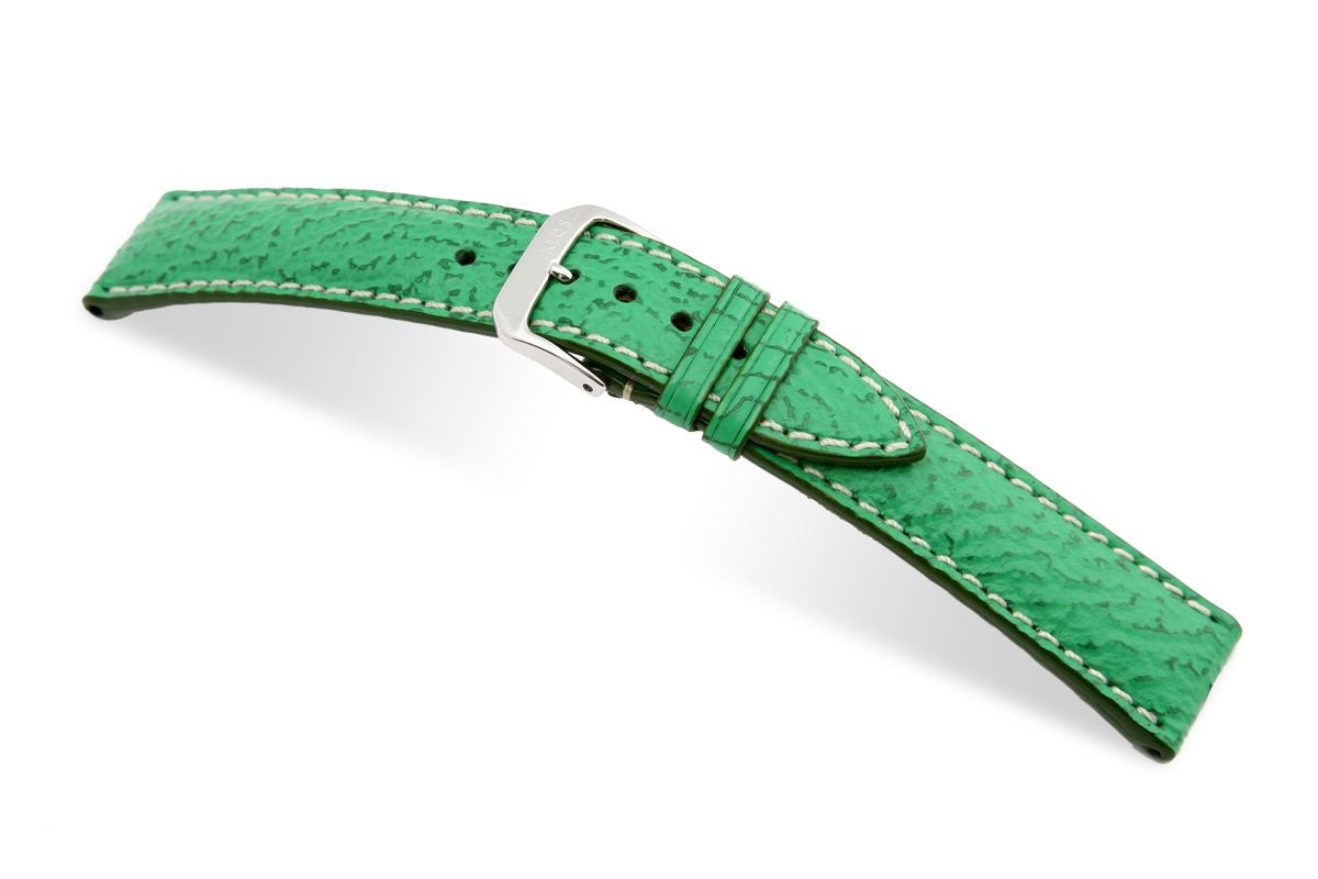Eksoottinen Wave -nahkaranneke on topattu ja sen vedenpitävyys on saavutettu erikoiskäsittelyllä. Ruostumattomasta teräksestä valmistetun soljen kohdalla on rannekkeessa toiminnallinen sauma turvallisuuden lisäämiseksi. Lenkit ovat käsin ommeltuja. Rannekkeen alaosa on tummaa nahkaa.